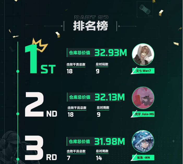 组队限时匹配赛接棒!考验实力更考验默契,以队伍“仓库物资总价值” 之和排名,前 11 支小队晋级半决赛,谁是最靠谱 “好团排”?答案即将揭晓!