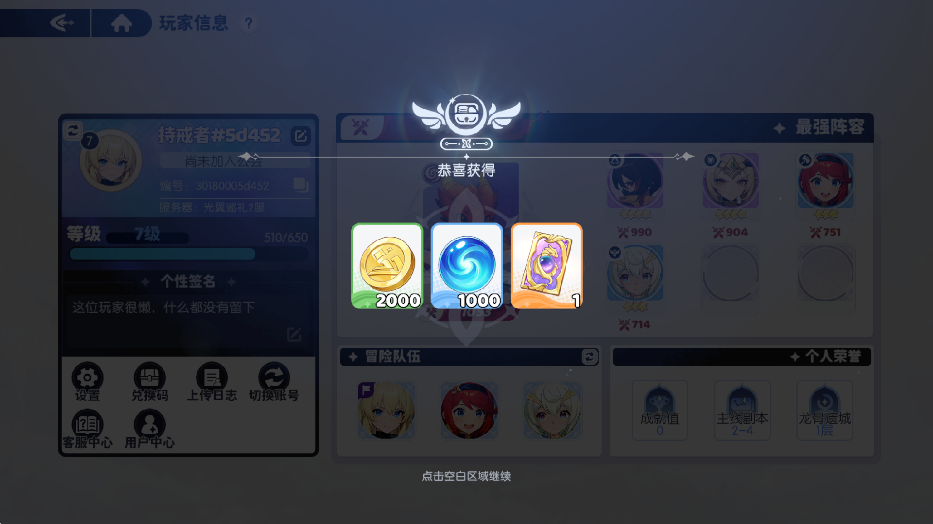 内容:金币*2000、幻灵经验*1000、召唤券*1