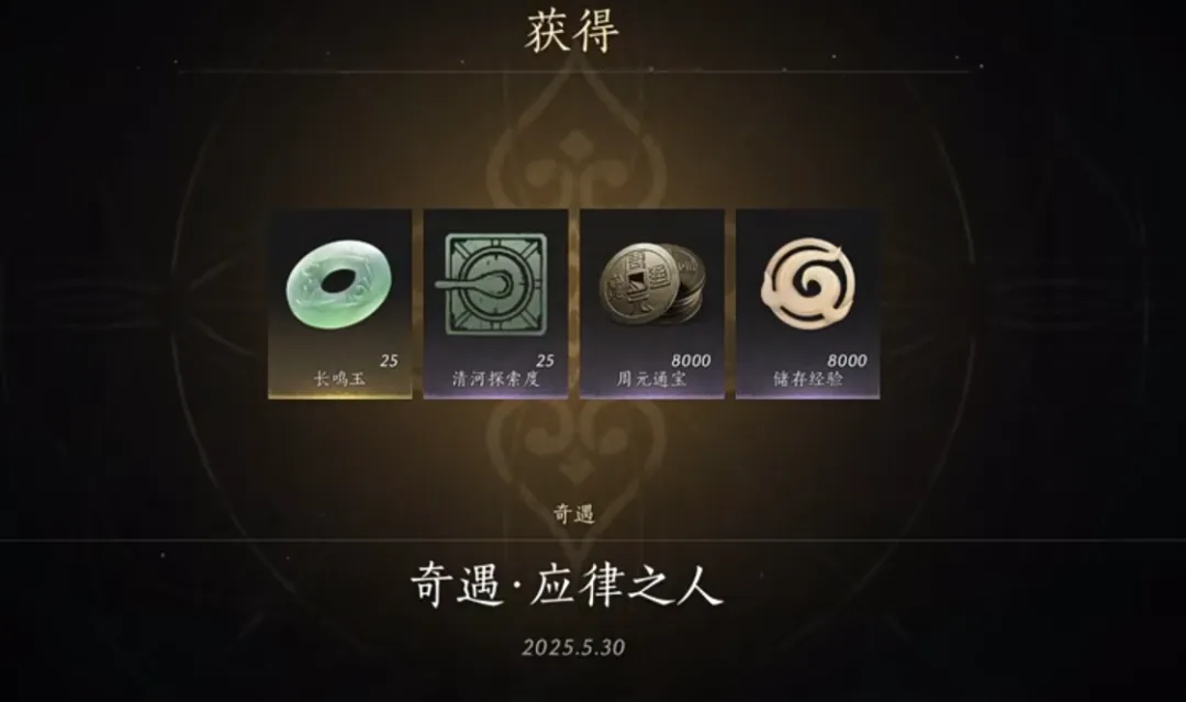 与神秘人交谈后,将自动触发剧情演出。等待剧情结束后,奇遇任务“应律之人”即宣告完成。