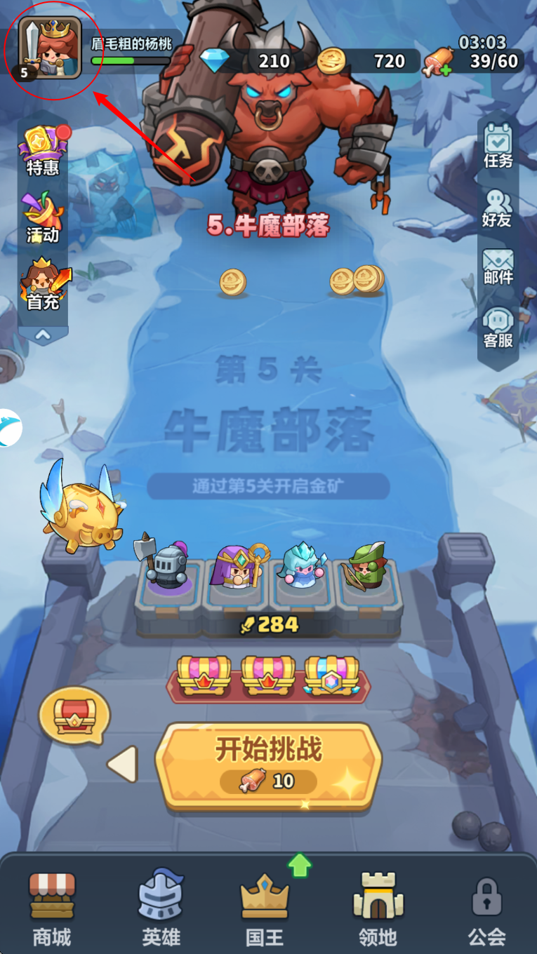 1、进入永远的蔚蓝星球游戏,点击左上角头像