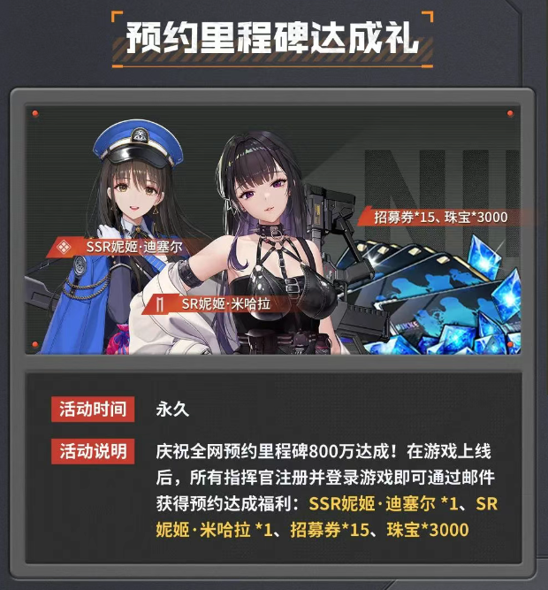 预约里程碑800万达成,获得对应的福利