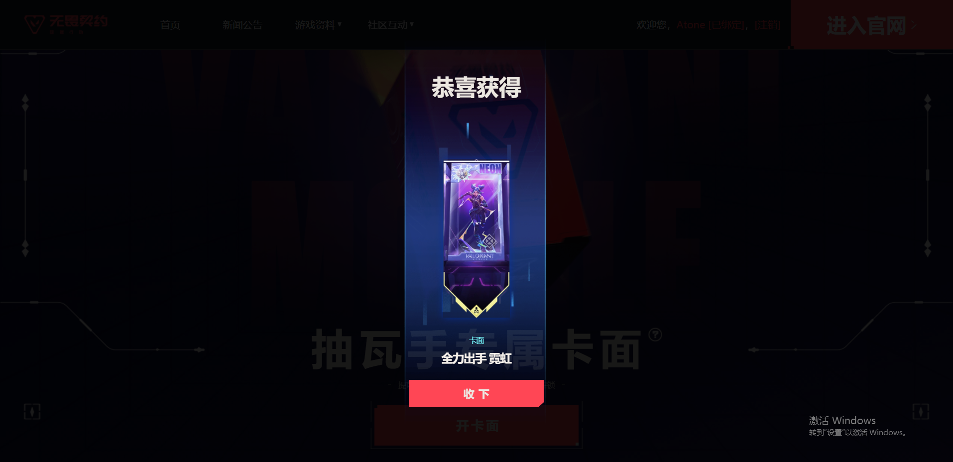 前往无畏契约官网进行预约即可获取专属喷漆,抽取限定卡面