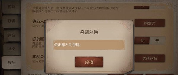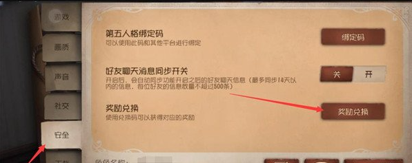2、进入设置后点击安全,然后一直向下拉会看到奖励兑换按钮点击进入。