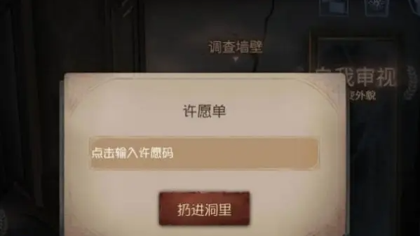 3、在许愿单里填入总换码再点击扔进墙洞即可。