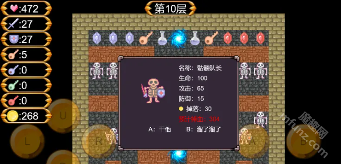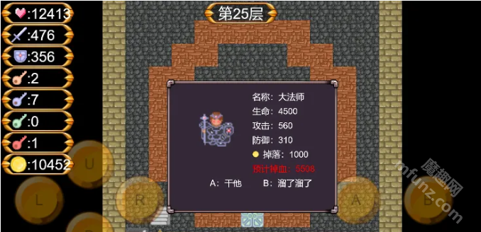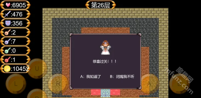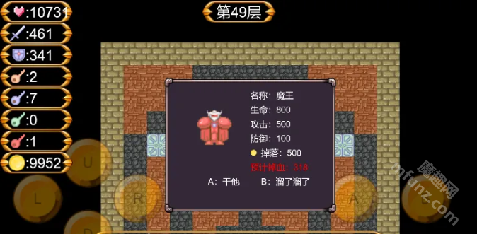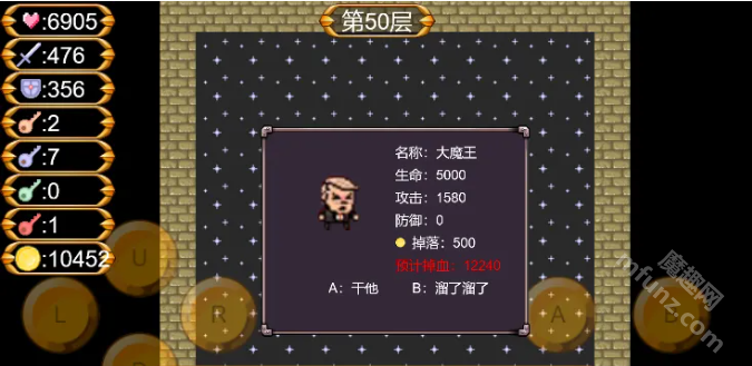 在此之前你也可以用向上飞的道具去50楼挑战真正的大魔王,只要攻击力能破防,血量不是问题。至此魔塔50层就顺利通关了。