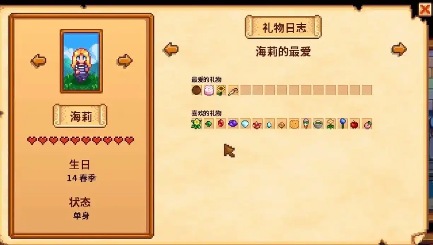 你知道在星露谷物语游戏中海莉喜欢什么礼物吗?在星露谷中了解npc喜好是非常重要的,星露谷物语中每个NPC都有自己的独特喜好,投其所好地赠送礼物是最快提升NPC喜好的方法之一,提升NPC的好感度可以触发特殊事件、对话和剧情,给玩家带来很多意想不到的惊喜。发现很多玩家不知道星露谷海莉喜欢什么礼物,下面就来给大家解答!
