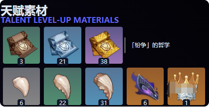 提升为8级:纷争的哲学*6、横行霸者的利齿*6、蚀灭的鳞羽*1、260000摩拉