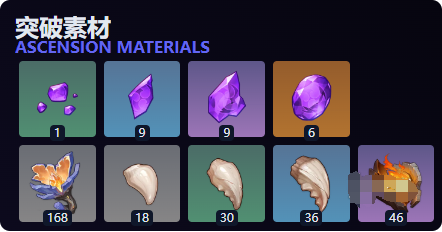 五十级所需素材:60000摩拉、最胜紫晶断片6个、龙像的无智核4个、云岩裂叶20个、老练的坚齿12个
