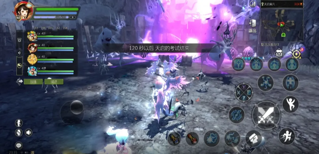 秒杀技能!!冒险家提升实力,速战速决。在一定时间内击败天启!!