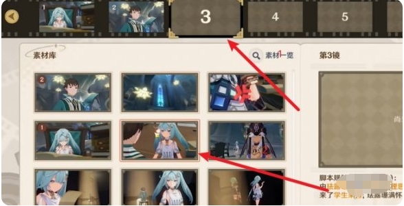 2、玩家需先点击上方的数字,然后从下方的素材库中选择并点击合适的即可。