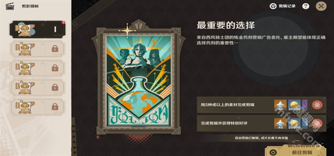 旅行者需根据活动提供的脚本选择合适的镜头素材进行剪辑。