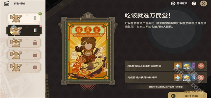 还有谁不知道原神的剪映辑帧活动?原神剪映辑帧活动总共分为五天,第一天的难度是最低的,越往后难度越高。玩家需要根据剪映辑帧活动给出的线索将素材进行排序,得到一只完整的影片,看完影片即算挑战成功。将原神剪映辑帧第一到五关任务全都完成即可获得原石和稀有的培养材料。想知道剪映辑帧活动怎么玩吗?已经给大家整理好了原神剪映辑帧第一到五关攻略,快来看看吧!