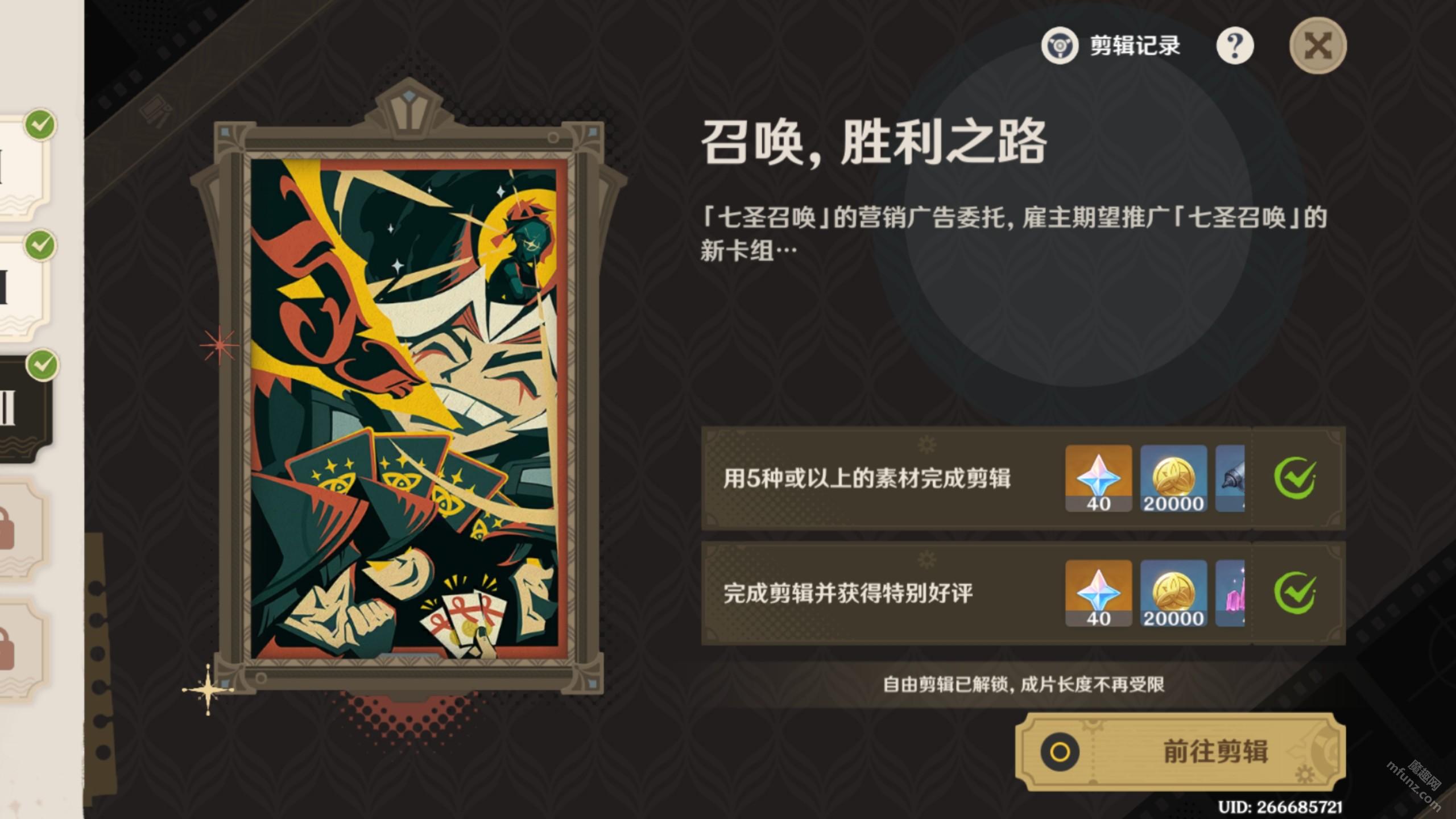 当旅行者成功获得特别好评后,即可不受脚本限制进行自由剪辑。