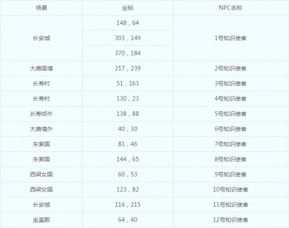 任务领取:1号知识使者(长安城148,64、303,149、370,184)