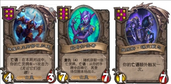 1.主打高攻随从配合亡语、复生,靠攻击频率与攻击力加成输出。关键随从: