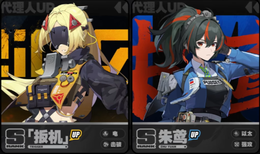 3.下半卡池(4月2日起):全新S级角色「扳机」(电属性击破)与复刻角色「朱鸢」(以太属性强攻),四星角色待定。
