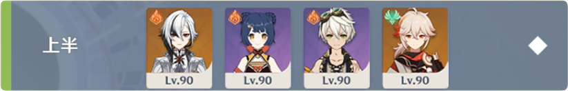 上半:两波遗迹龙兽地巡,推荐温迪、万叶等聚怪角色将敌人拉至场地中央,配合香菱、公子等持续AOE角色压制血量。