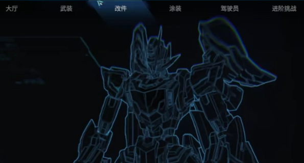 主界面点击“格纳库”进入机甲管理界面,选择需要调整的机体。此处可查看当前机甲的武装配置、改件槽位及外观涂装。