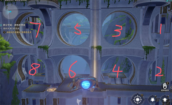 完成雕像调整后,前往神谕圣地操控扎格列斯之手,按以下顺序穿越圆环: