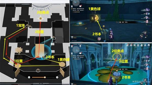 切换至「永夜」,击打黄色能量球使其归位,开启宝珠照射通路。