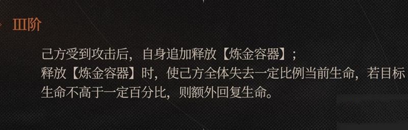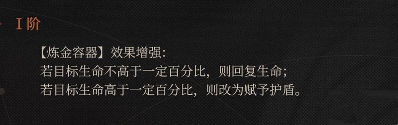 炼金容器增幅:治疗量提升至攻击比例60%,且治疗目标获得【再生】(每回合回血10%),持续2回合。