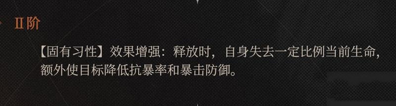 固有习性强化:攻击附加【虚弱】效果(降低治疗效果25%),持续2回合;目标受到暴击时,自身获得1点激情点数。
