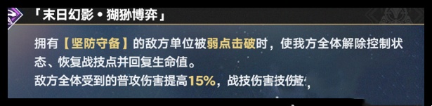 末日幻影的敌人具有不同的弱点属性和技能机制,因此在搭配阵容时,需要考虑以下几个方面:根据敌人的弱点元素,选择相应元素的角色进行攻击,以造成更高的伤害。例如,敌人弱火,就可以选择姬子、艾丝妲等火属性角色。一个完整的阵容应包含输出、辅助、生存等不同定位的角色。输出角色负责造成主要伤害,辅助角色提供增益、减益或控制效果,生存角色则保障队伍的生存能力。技能配合:注意角色之间的技能配合,例如有些角色的技能可以为队友提供能量回复、增伤等效果,合理搭配可以提高队伍的整体输出和生存能力。