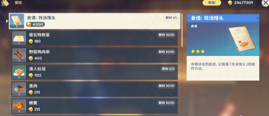 获取方式:先抵达稻妻城的传送锚点,前往凯瑟琳对面的小店“志村屋”,与店主志村勘兵卫对话,花费一定的摩拉就能购买到这份食谱。
