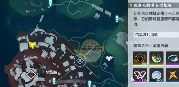 打开游戏地图,找到并点击焚焰海区域的传送点,选择“前往”,快速抵达焚焰海。这是寻找刺玫菇的起始关键地点,务必精准定位。