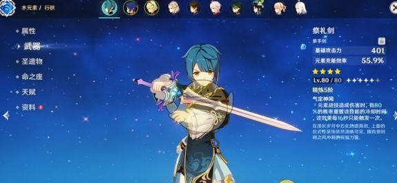 充能向:祭礼剑,行秋释放元素战技时有概率重置冷却时间,使其能频繁释放技能,保证水元素的附着与伤害,充能效率副词条也十分契合;西风剑,解决充能问题;前期若没有四星充能武器,飞天御剑也可暂用。