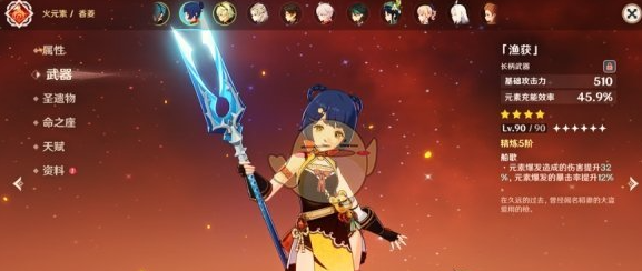 其他:护摩之杖,高暴击伤害加成和生命值转化攻击力的特效,能极大提升香菱的输出;匣里灭辰,在面对水元素或火元素附着的敌人时,能提供可观的增伤;千岩长枪,在队伍中有其他璃月角色时,可获得攻击力加成。