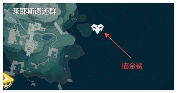 1.描金鲨:出没于莱耶斯遗迹群的右侧区域。这个位置相对较为开阔,大家前往莱耶斯遗迹群后,往右侧探索就能发现它的踪迹。在寻找描金鲨时,要留意周边的水域环境,它可能会在较为隐蔽的角落,或者随着水流游动。