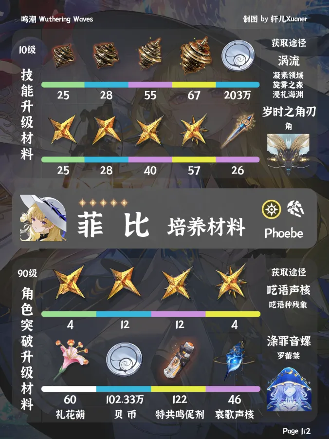 1.贝币:作为游戏中的重要货币,在角色培养的各个环节都不可或缺。培养菲比需要准备170000贝币,它将用于角色的等级提升与突破等关键步骤。