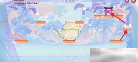 4.在整个关卡过程中,要时刻注意梦境状态的切换时机,以及移动砖块的移动方向和位置,多尝试几次,掌握好节奏,就能顺利收集3枚油豆腐并抵达拉面店,完成“小狐狸的白日梦”第二天的挑战,领取丰厚的活动奖励。