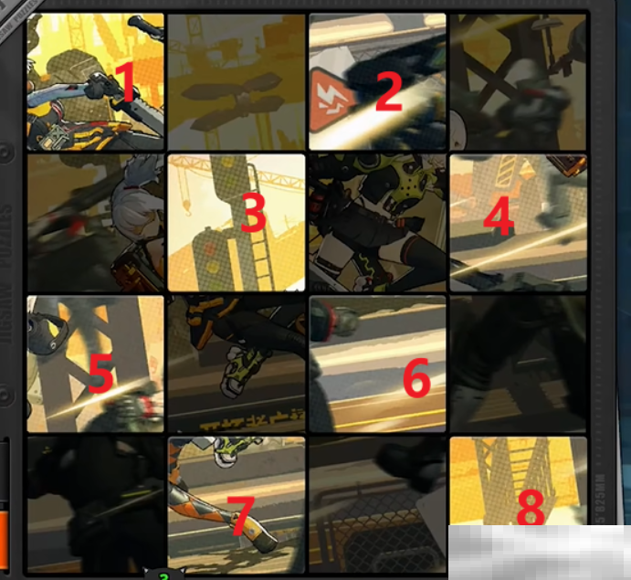 2.第一步:进入拼图界面后,能看到杂乱分布的拼图碎片。此时,我们需要将1号碎片和2号碎片进行位置交换。这一步就像是在整理混乱的思绪,让拼图的边缘逐渐有了雏形。经过这一交换,原本看似毫无关联的两个部分开始有了契合的趋势。