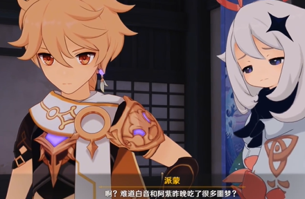 2.等待与前往:等待游戏时间到第二天早上8点至12点之间,这个时间点在游戏内通过“调整时间”功能设置。时间到达后,前往稻妻城的秋沙钱汤。到达秋沙钱汤后,自动触发剧情,了解到昨日接待的两个顾客引发了食梦貘消化不良,瑞希等人对此感到担忧。