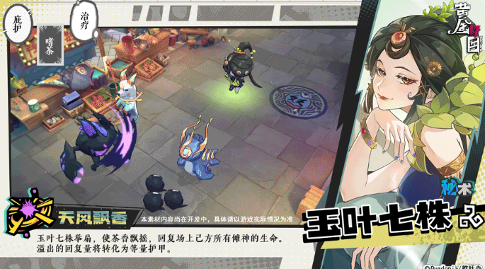 释放技能后,玉叶七株周身会散发出浓郁的茶香,形成一个持续5秒的圆形领域。在这个领域内,己方队友的攻击力提升15%,防御力提升10%,同时还能每秒回复一定的生命值。这是一个非常强大的辅助技能,在团队作战中作用巨大。例如在PVP对战中,当己方团队成员集中站位时,玉叶七株释放茶香萦绕,能让队友在短时间内属性大幅提升,在对拼中占据优势,无论是进攻还是防守都更具底气。