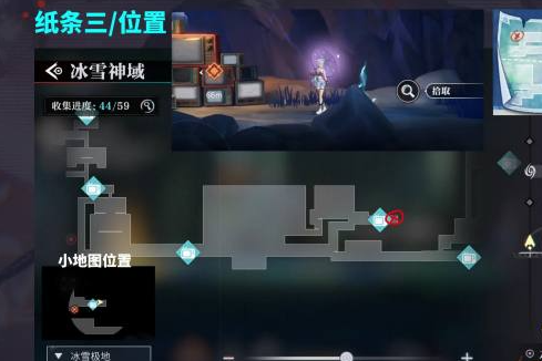 纸条4:位于冰封山脉的幽谷入口处,标注个位数字“1”。