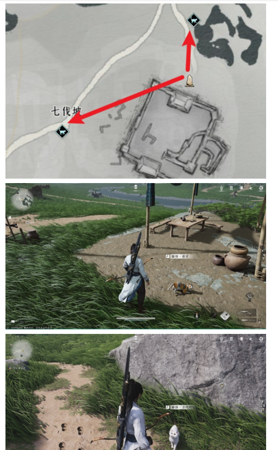 传送至“北盟遗址”,西北方向棚子下可见第一只;西南方向沿小道至饭店旁发现第二只。