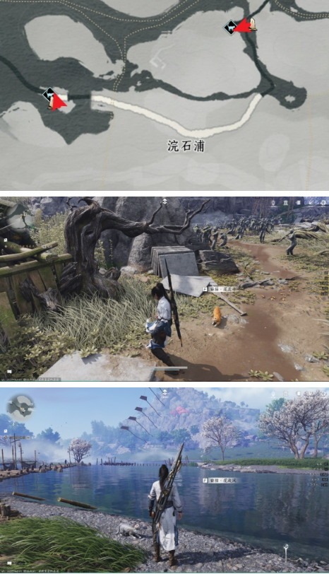 传送至浣石浦标记点,向西南方向过河后可见,直接抚摸互动。