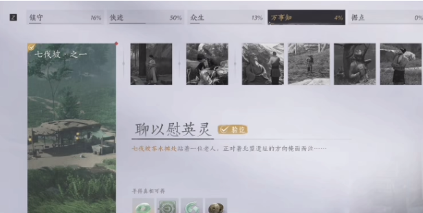 1.前往地图标记的七伐坡,在茶水摊附近找到NPC周爷爷,对话后接取任务“聊以慰英灵”。周爷爷会提及包裹位置并提示危险。