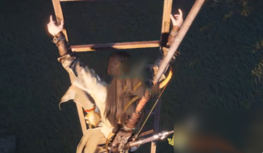 在树干旁放置长梯,攀爬至顶端后按交互键采集。梯子稳定性较差,建议优先使用轻功以提升效率。
