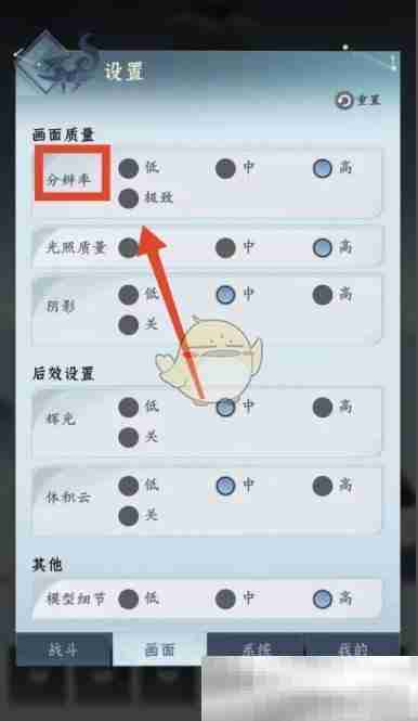 6.在画面设置中,找到“画面质量”选项,根据您的设备性能和需求选择合适的分辨率。游戏提供了多种分辨率选项供您选择。