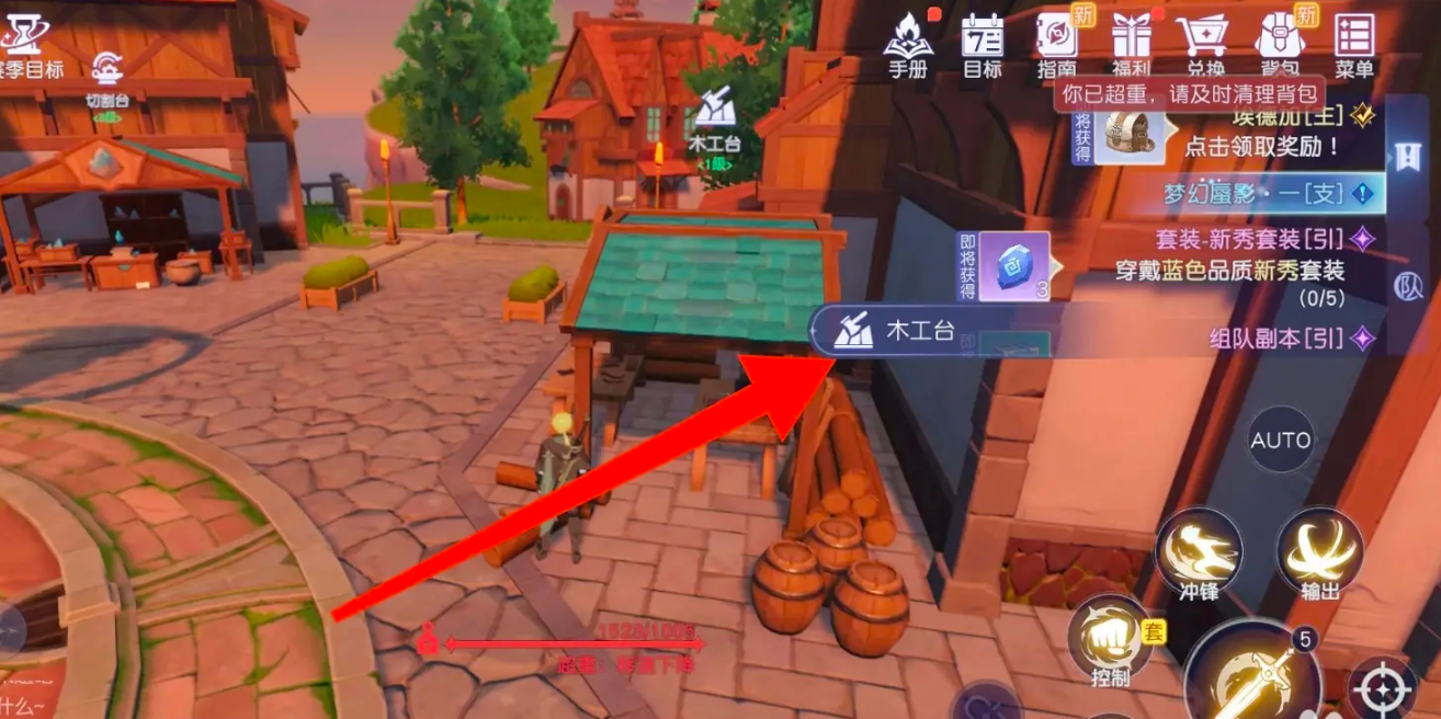 2.前往木工台:点击图标后,角色将自动导航至木工台所在位置。
