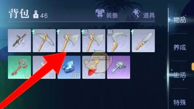 3.选定石斧:在菜单中浏览并选择“石斧”这一重要道具。