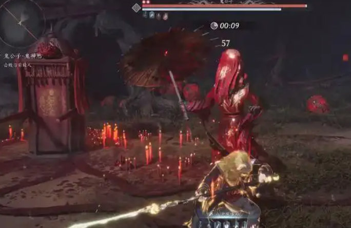 先走到两块木板的位置。在鬼公子丢出伞时稀释攻击,注意飞来的三连击和后续的二连击及消失红光,均需稀释。在鬼公子的三连击时使用护盾,起飞后挡住飞伞,需连续挡11下,也可根据声音闪躲。