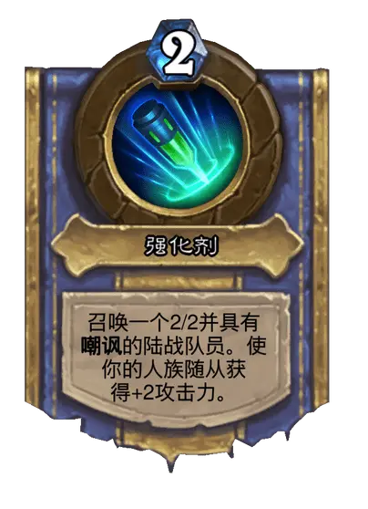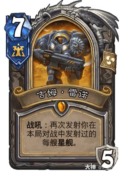 雷诺技能:强化剂,召唤2/1星舰组件衍生物(机械),具备发射时效果,增强机械阵容。