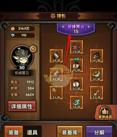 2.进入巅峰等级详情:在装备界面中,找到并点击“巅峰等级”选项,进入相关详情页面。