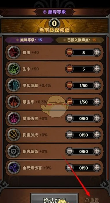 5.通过以上简洁的步骤,玩家可以轻松重置巅峰点数,为角色属性重新布局。