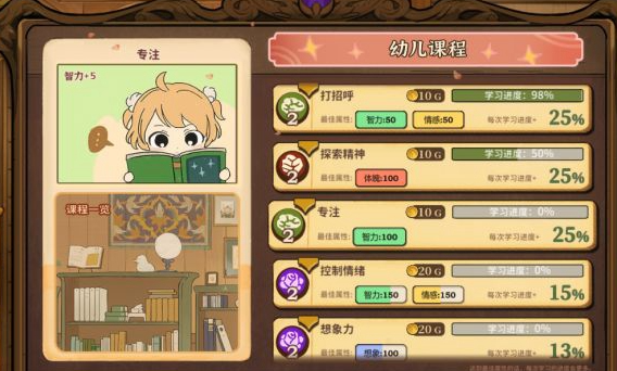 3.密切留意女儿的学习进度。每次学习若能发挥到极致,可增加25点进度。因此,确保女儿进行四次这样的高效学习,即可轻松达到100%。